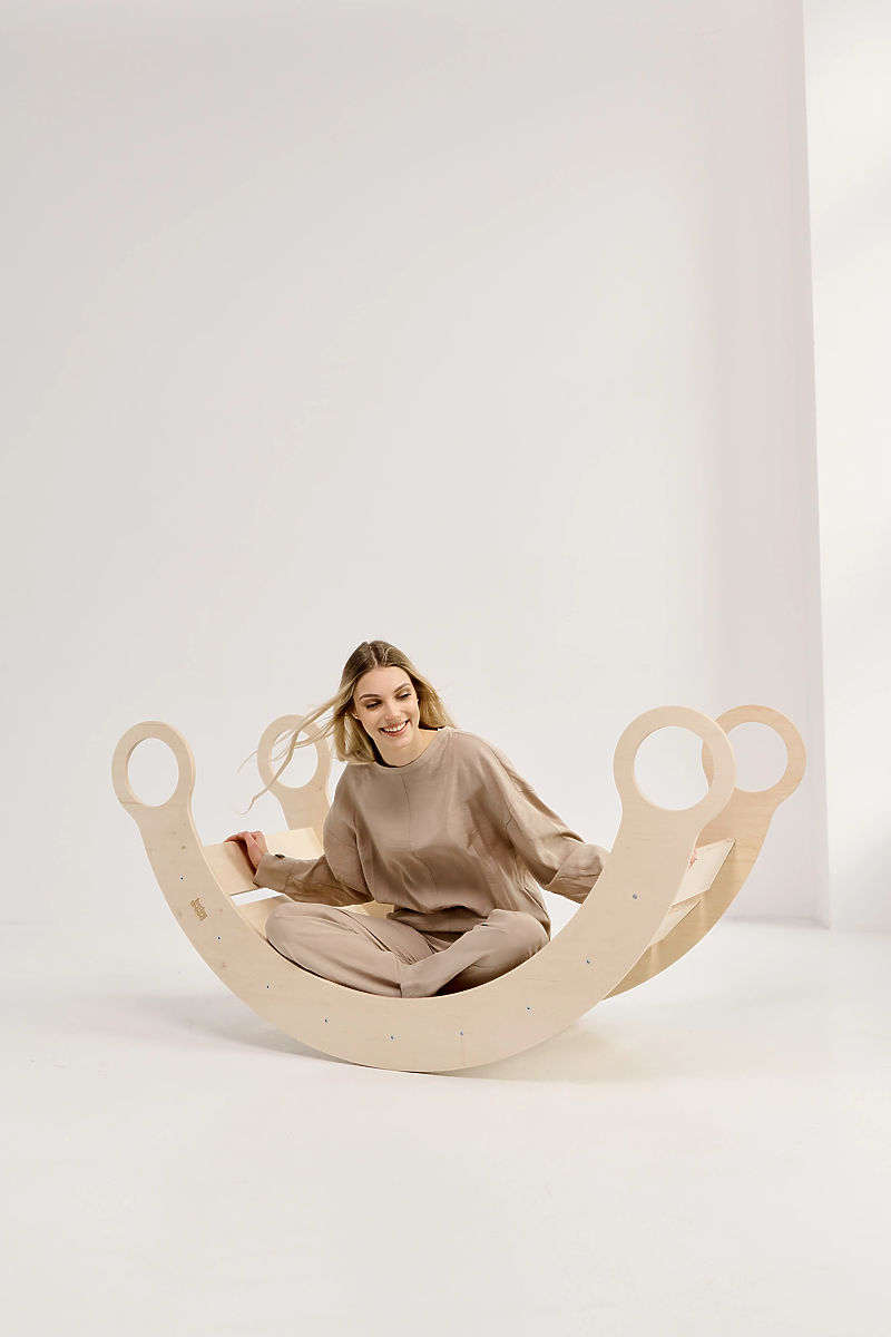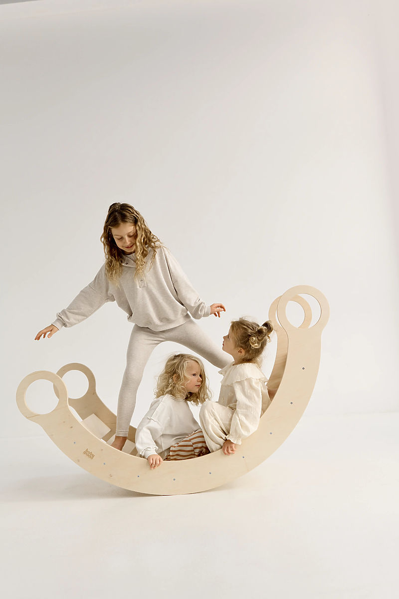 Die stilvolle Montessori Holzschaukel XL in natürlicher Farbe passt perfekt in Kinderzimmer oder Spielzimmer. Dieses multifunktionale Set ermöglicht sicheres Schaukeln und kreative Spiele – es kann als geheimes Versteck, kleiner Tisch oder Baufläche dienen. Es fördert auf natürliche Weise die Entwicklung von Kraft, Gleichgewicht und motorischen Fähigkeiten der Kinder. Die Montessori Schaukel XL ist robust und langlebig dank hochwertigem Naturholz. Ihr elegantes und zeitloses Design passt leicht in jedes Interieur und bietet Kindern stundenlangen Spaß bei der Entwicklung ihrer physischen und psychomotorischen Fähigkeiten.