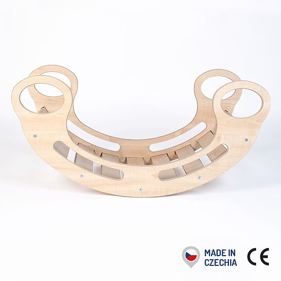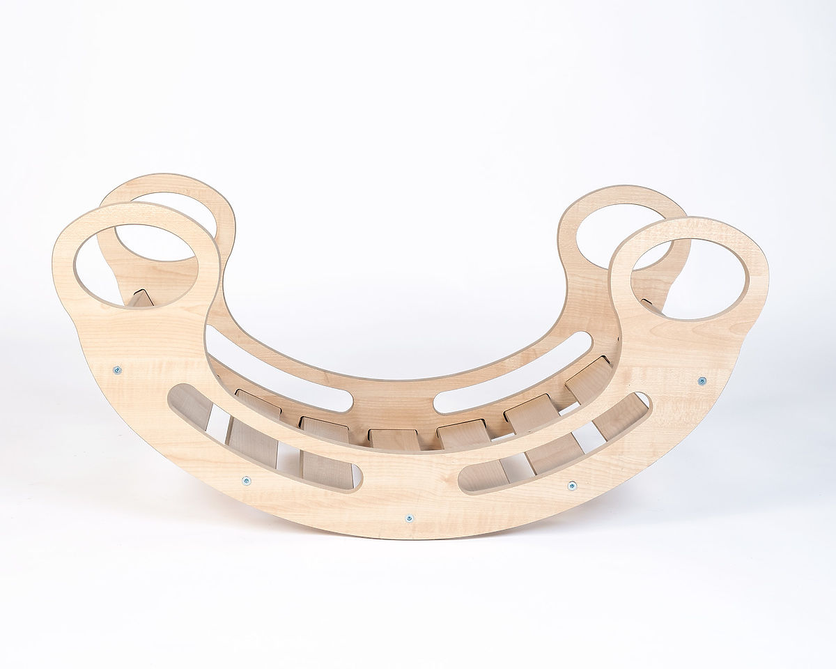 Die Schaukel fördert die motorische Entwicklung des Kindes, eine korrekte Körperhaltung und Balance und weckt die kindliche Fantasie. Die Ausschnitte an den Seiten ermöglichen es dem Kind, sich beim Spielen festzuhalten.