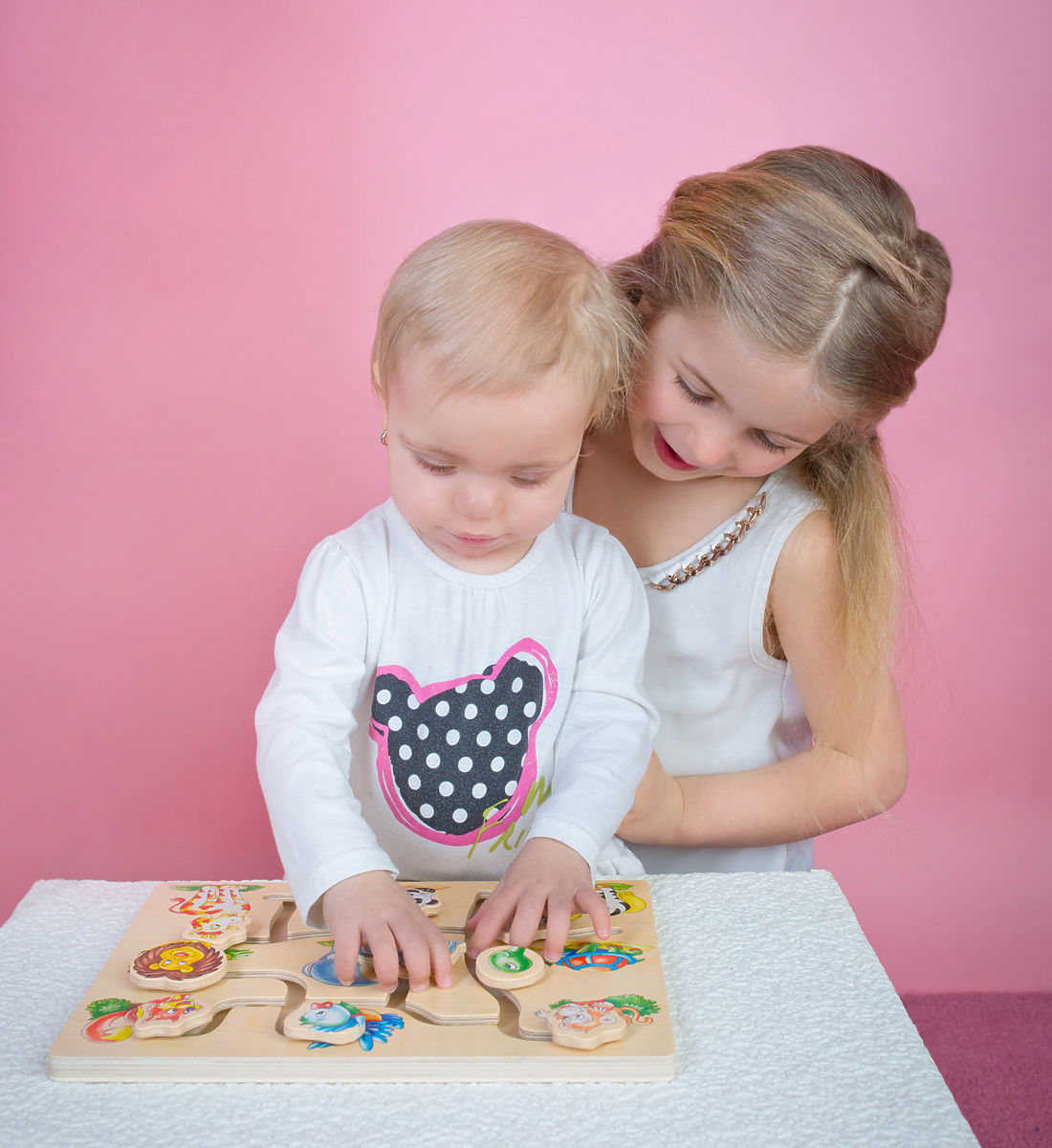 Wie sieht eine Giraffe aus und welchen Kopf hat ein Löwe? Für geschickte Kinder wird es ein Kinderspiel sein, das ganze Tier korrekt zuzuordnen. Das Spielzeug ist robust und aus starkem Sperrholz gefertigt. Hauptmerkmale: Robuste Holzausführung