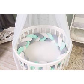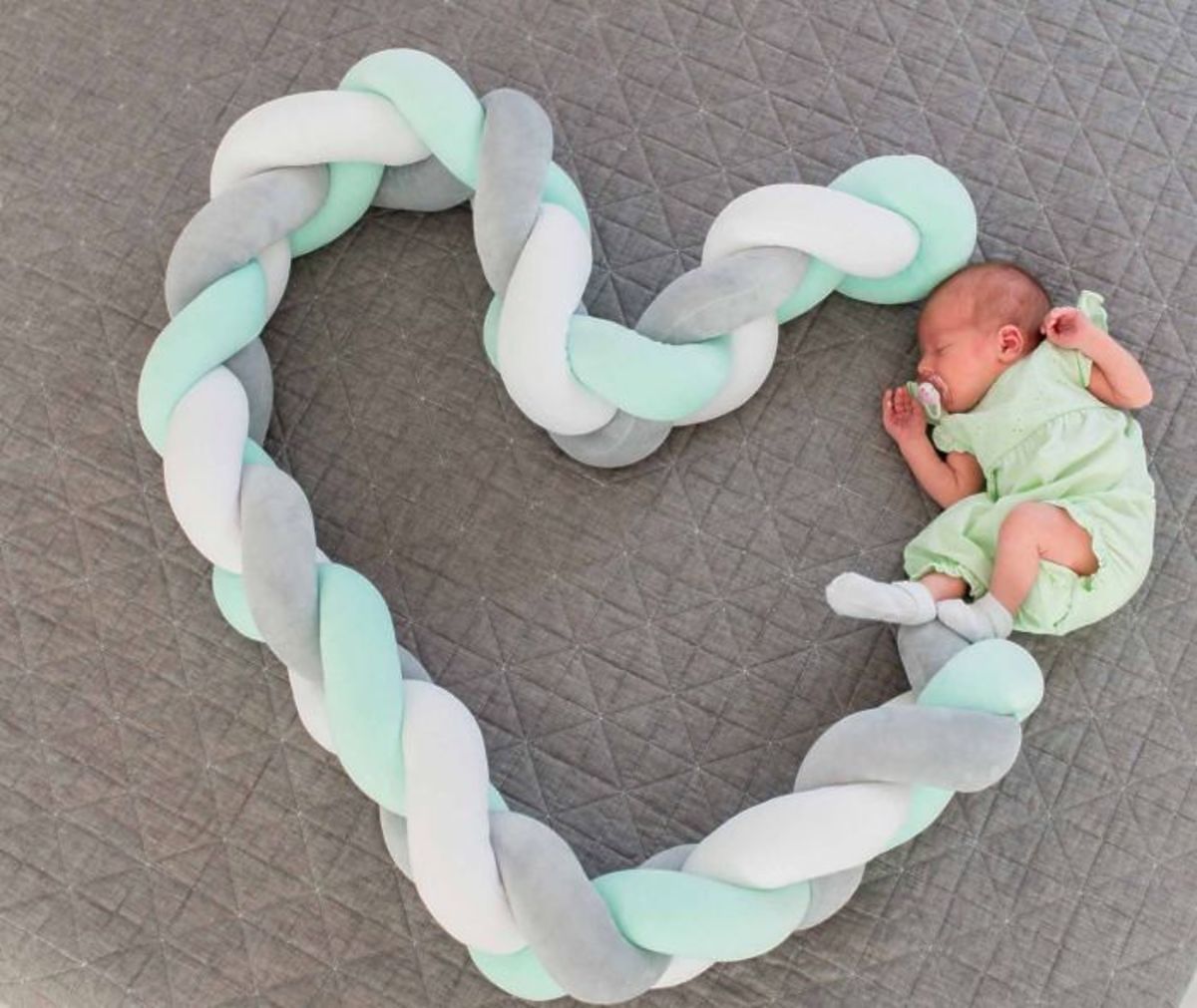 Das geflochtene Bettnest in Pastellfarben ist ein modernes, stilvolles dekoratives Element für jedes Babybett. Es sorgt für Sicherheit bei den Bewegungen des Babys im Bett.