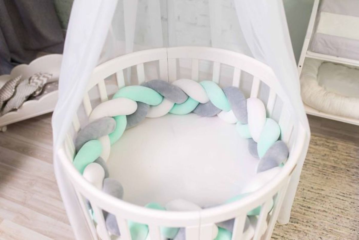Das geflochtene Bettnest besteht aus samtigem, sehr angenehmem Veloursmaterial, das mit antiallergischen Silikonkugeln gefüllt ist. Gleichzeitig schützt das Nest das Baby vor hartem Holz und dem Durchstecken der Gliedmaßen zwischen den Gitterstäben des Babybetts. Dank dieses Bettnests wird sich das Kind im Bettchen gemütlich und sicher fühlen.