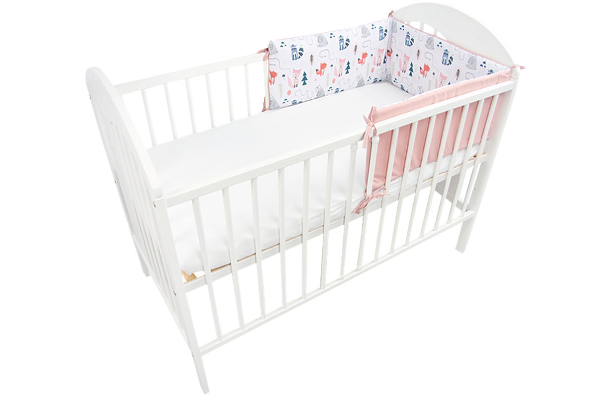 Dieser schöne weiche Kaminsims ist für Kinderbetten mit den Maßen 120 x 60 cm geeignet. Eine Seite des Kaminsims ist mit einem schönen Motiv von Füchsen und ihren tierischen Freunden verziert und die andere Seite hat eine angenehme rosa Farbe. Dank der universellen Pastellfarben passt es perfekt in jeden Raum.