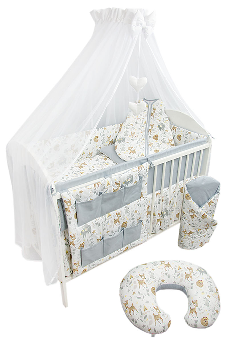 Dieser schöne weiche Kaminsims ist für Kinderbetten mit den Maßen 120 x 60 cm geeignet. Eine Seite des Kaminsims ist mit einem schönen Motiv von Waldtieren verziert und die andere Seite ist grau. Dank der universellen Farben passt es perfekt in jeden Raum.