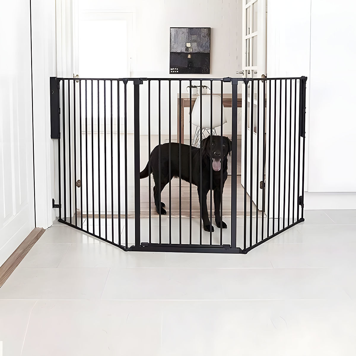 Schutzbarriere für Kinder und Tiere mit 5 flexiblen Metallpaneelen. .. mehr
