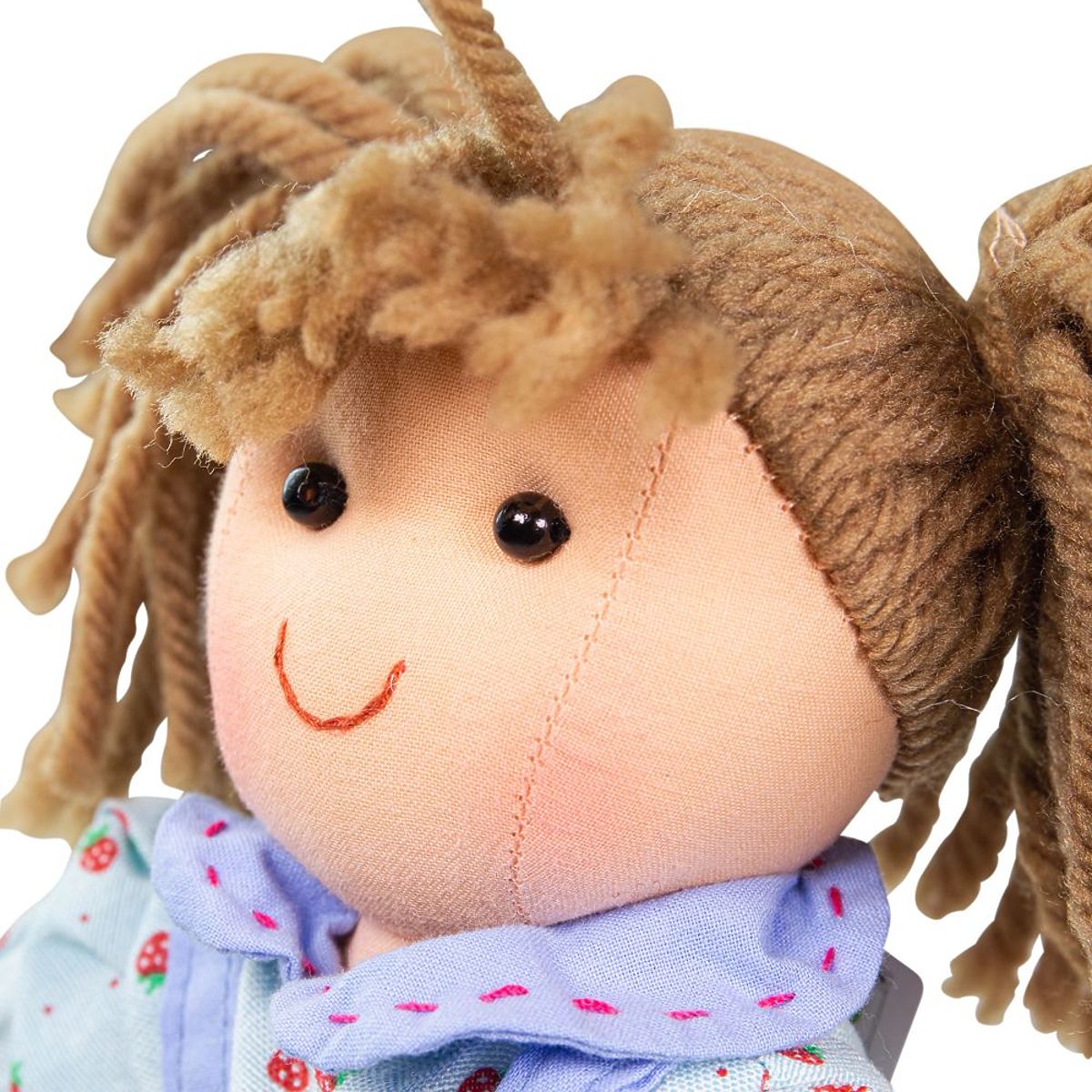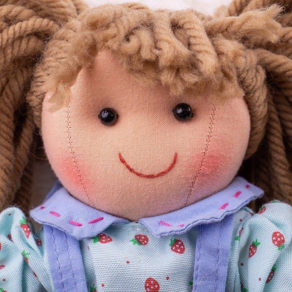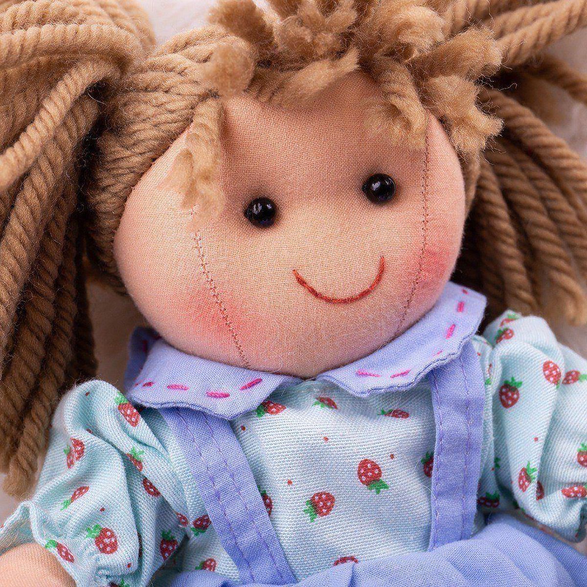 Lernen Sie Grace kennen - eine fröhliche, bunte Stoffpuppe, mit der Ihr Kind sicherlich gerne spielen wird. Die Puppe ist in hochwertiger Kleidung in einem hübschen, hellblauen Design mit roten Erdbeermustern gekleidet. Weiche Stoffpuppen sind eine großartige Möglichkeit, kreatives Spielen zu fördern. Hauptmerkmale: sicheres weiches Körperchen, das Spielen mit der Puppe fördert die Feinmotorik und die Fähigkeit zu helfen und zu pflegen, für die Bigjigs Toys Puppe kann Kleidung in der passenden Größe nachgekauft werden, geeignet ab Geburt, entspricht den aktuellen europäischen Sicherheitsnormen