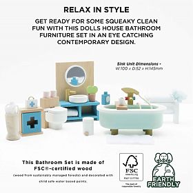 Ein traditionelles und farbenfrohes Set aus Badezimmermöbeln und -ausstattung aus Holz. Es passt perfekt in Kinderpuppenhäuser. Sechs Möbelstücke und Accessoires – Badewanne, Dusche, Toilette, Waschbecken, Handtuchhalter, Erste-Hilfe-Kasten. Das Möbelset im Retro-Stil wird ethisch einwandfrei aus nachhaltigen Materialien hergestellt. Die Größe passt zu Le Toy Van-Puppenhäusern. Weitere Daisylane-Puppenhauszubehörteile finden Sie auf unserer Website. Spielzeug mit einem Zweck Alle Spielzeuge von Le Toy Van werden mit einem Zweck hergestellt – um eine lange Lebensdauer zu gewährleisten. Mit Liebe von erfahrenen Kunsthandwerkern unter Verwendung ethischer Praktiken und nachhaltiger Materialien entworfen, die unseren Planeten schonen. Hauptmerkmale: Maßstab 1:12, ethisch einwandfrei hergestellt aus nachhaltigen Materialien, getestet nach strengsten Standards, bemalt mit ungiftigen Farben auf Wasserbasis, schult Kommunikationsfähigkeiten und Koordination, inspiriert zu kreativem und fantasievollem Spielen. Daisylane-Kollektion: Prestigeträchtige Sammlung von Puppenhäusern und Zubehör von Le Toy Van . Vor mehr als 25 Jahren entwarf Gründer Georges sein erstes Puppenhaus, den Grundstein dieses Unternehmens. Die hölzernen Puppenhäuser von Daisylane werden unter ethischen Gesichtspunkten aus nachhaltigen Materialien hergestellt und sind einzigartig und werden die Fantasie eines Kindes nicht bremsen. Ein Familienerbstück, eine echte Gaming-Investition.