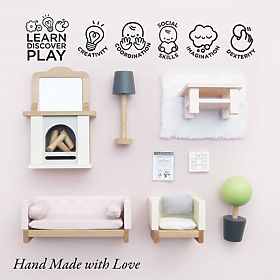 Nach einem erlebnisreichen Tag entspannen sich die Figuren in diesen wunderschönen Holzmöbeln. Ihr Design passt in Puppenhäuser, sie regen Kinder zum Spielen an und beflügeln ihre Fantasie. Wohnzimmermöbel mit vielen Details, in ungiftigen Farben lackiert, aus nachhaltigem Holz gefertigt – das Spielzeug wird Ihnen wirklich lange Freude bereiten. Das Set besteht aus einem Sofa und einem Sessel mit Textilkissen, einem Couchtisch, Holzscheiten für den Kamin für kühlere Nachmittage sowie einer Kaminplatte mit Spiegel. Wenn Kinder Tiere mögen, werden sie auch die Katze lieben, die über ein eigenes Bett verfügt. Sie hat die perfekte Größe für Le Toy Van-Puppenhäuser, weiteres Daisylane-Puppenhauszubehör finden Sie auf unserer Website. Spielzeug mit einem Zweck Alle Spielzeuge von Le Toy Van werden mit einem Zweck hergestellt – um eine lange Lebensdauer zu gewährleisten. Mit Liebe von erfahrenen Kunsthandwerkern unter Verwendung ethischer Praktiken und nachhaltiger Materialien entworfen, die unseren Planeten schonen. Hauptmerkmale: ethisch einwandfrei aus nachhaltigem Holz hergestellt, nach strengsten Standards getestet, bemalt mit ungiftigen Farben auf Wasserbasis, schult Kommunikationsfähigkeiten und Koordination, inspiriert zu kreativem und fantasievollem Spielen. Daisylane-Kollektion: Prestigeträchtige Sammlung von Puppenhäusern und Zubehör von Le Toy Van. Vor mehr als 25 Jahren entwarf Gründer Georges sein erstes Puppenhaus, den Grundstein dieses Unternehmens. Die hölzernen Puppenhäuser von Daisylane werden unter ethischen Gesichtspunkten aus nachhaltigen Materialien hergestellt und sind einzigartig und werden die Fantasie eines Kindes nicht bremsen. Ein Familienerbstück, eine echte Gaming-Investition.