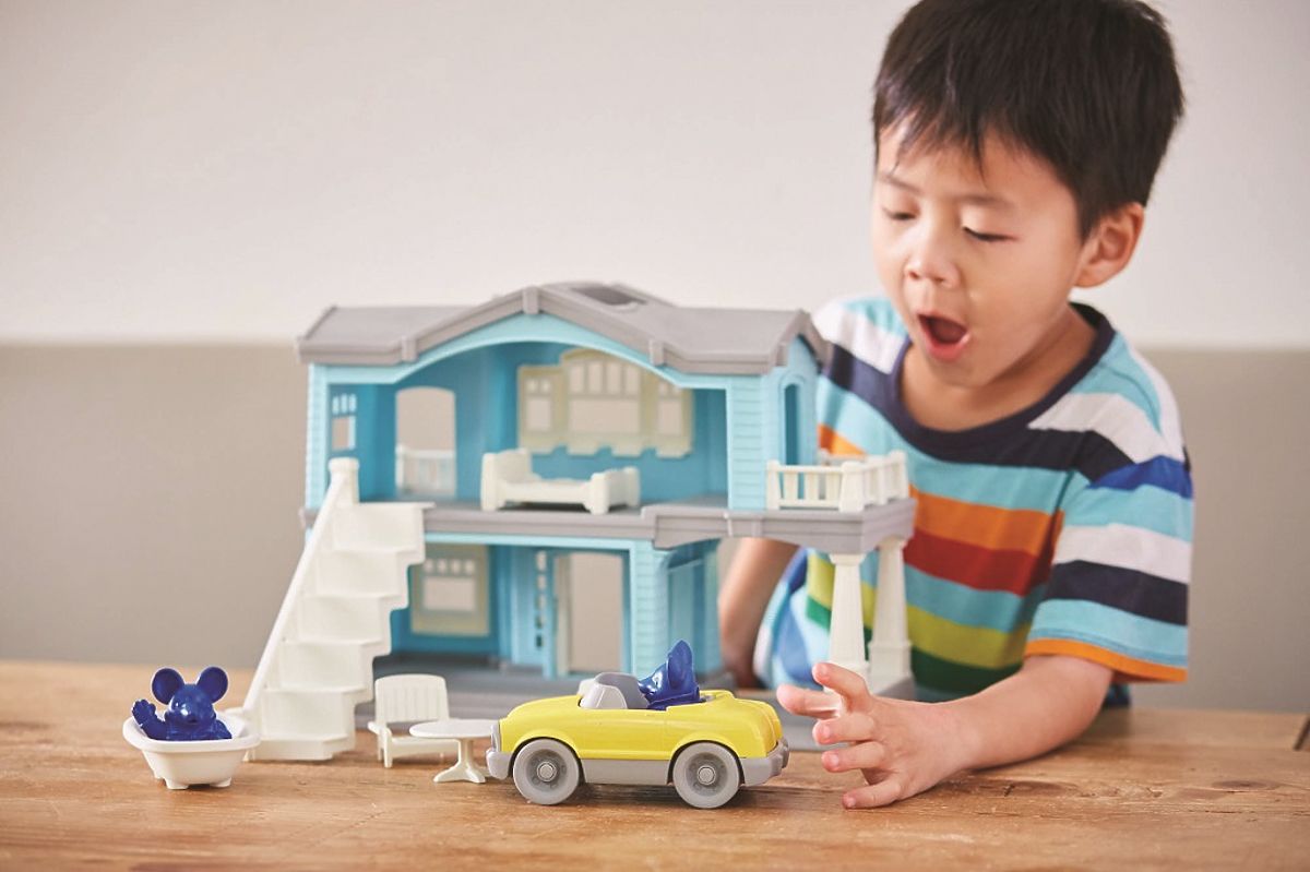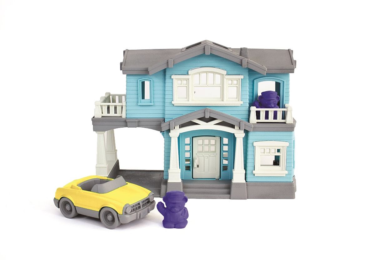 Schauen Sie, das Green Toys Haus für ein Spiel voller Fantasie und Kreativität! Es hat zwei Etagen, im Set sind auch ein gelbes Cabrio, 2 Mäusefiguren, eine Treppe, ein Bett, eine Badewanne, ein Tisch und 2 Stühle enthalten. Die verschiebbare Treppe kann im zweiten Stockwerk beliebig platziert werden, auf dem Balkon oder auf der Rückseite des Hauses. Badewanne, Bett, Tisch und Stühle passen ebenfalls in jedes Zimmer. Das Haus hat eine offene Rückseite und Balkone, die Kinder können es nach ihren eigenen Vorstellungen einrichten. Es fördert kooperatives und interaktives Spielen. Die Teile passen einfach ins Haus und können somit auch außerhalb des Spiels dort verbleiben, was Ihnen Stauraum spart. Das Spielzeug ist ungiftig, enthält kein BPA, PVC, Phthalate oder Außenanstrich. Hergestellt aus 100% recyceltem Kunststoff. Wenn Sie nach Plastikspielzeug für den Sand oder das Wasser suchen und gleichzeitig großen Wert auf die Sicherheit Ihrer Kinder legen, schauen Sie sich die Produkte der amerikanischen Marke Green Toys an. Sie stellen umweltfreundliche Spielzeuge her, die nicht nur in den USA beliebt sind, sondern weltweit unglaubliche Erfolge feiern. Green Toys steht vor allem für verantwortungsvolle Spielzeugherstellung aus recyceltem Kunststoff von Milchflaschen. Hauptmerkmale: Haus, 2 Figuren, Cabrio, Treppe, Bett, Badewanne, Tisch, 2 Stühle alle Teile passen ins Haus sicherer, BPA-, PVC-, phthalatfreier Material spülmaschinengeeignet hergestellt aus 100% recyceltem Kunststoff in den USA
