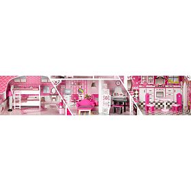 Dieses schöne Holzhaus Victoria wird sicherlich jeder jungen Dame gefallen. Sieben Zimmer, drei Etagen, ein fahrender Aufzug und Holzmöbel garantieren stundenlangen Spaß und Genuss.