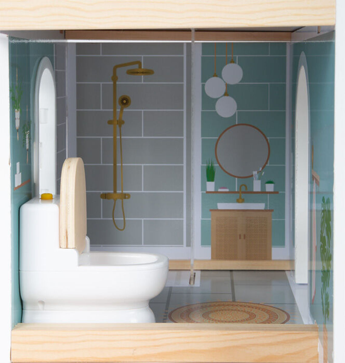 Dieses moderne Puppenhaus hat eine offene Vorderseite mit schönen künstlerischen Details und einem modernen Interieur. Eine kombinierte Küche mit Essbereich, Schlafzimmer, Badezimmer und auch eine kleine Terrasse mit Sitzgelegenheit. Perfektes Spielzeug für fantasievolles Spielen von Kindern. Offenes Wohnen mit Wendeltreppe, zu öffnenden Fenstern, modernem Badezimmer im Erdgeschoss, mit Plexiglas. Es gibt auch 8 Möbelstücke, textile Accessoires wie Bettwäsche und Kissen. Große Terrasse mit Sitzgelegenheit, zu öffnende Toilette, Küchenschränke und Kühlschrank mit Türen, auch Schubladen sorgen für realistisches Spiel. Bank und Bett haben textile Kissen, das Bett auch eine Decke. Diese Puppenvilla passt in jedes Wohn- und Kinderzimmer dank der hellen Fassade und der modernen Farben. Dank der offenen Seite können mehrere Kinder gleichzeitig mit dem Haus spielen. Geeignet für Puppen bis 12 cm. Hauptmerkmale: 3 Zimmer, Terrasse, Gartenfunktionale Möbel aus Kunststoff mit Holzdetaillierter heller Außenbereich und modernes Farbschemakompaktes und stabiles Holzpuppenhaus mit vielen Details innen und außen2 Stockwerke verbunden durch Wendeltreppe modernes Design des Interieurs, zu öffnende Fenster, Duschwand aus Plexiglas kompatibel mit Figuren LE11804