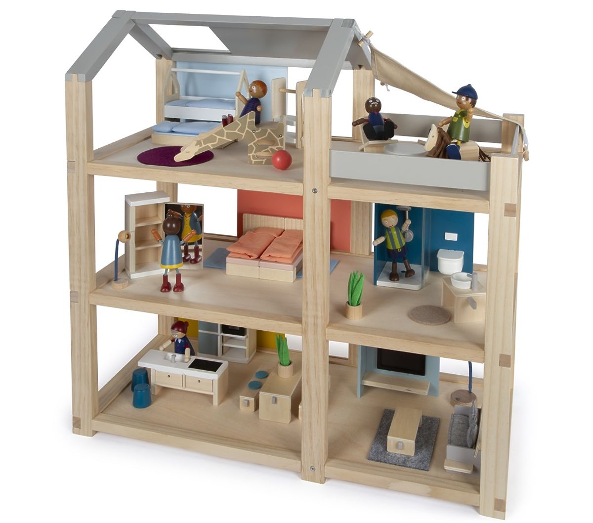 Dieses große skandinavische Puppenhaus aus Holz mit drei Etagen und einer geräumigen Dachterrasse wird nicht nur ein unterhaltsames und kreatives Spielzeug .. mehr