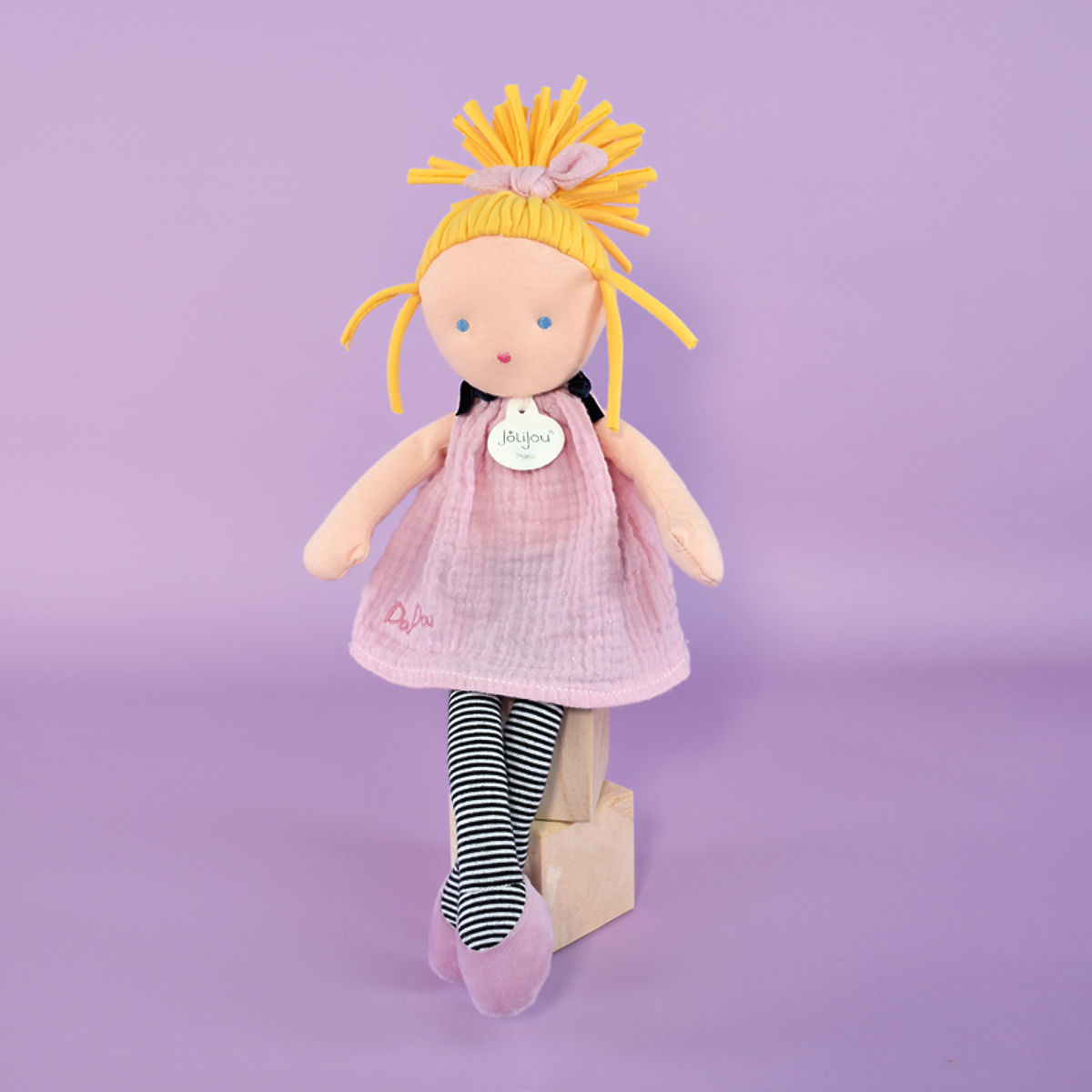 Diese niedliche Puppe hat ihren eigenen Boho-Stil. Puppe Inés ist in gestreiften Strumpfhosen gekleidet. Ihre rosa Ballerinas und das rosa Kleidchen betonen ihren Stil perfekt. Und um noch schicker zu sein, hat sie zusätzlich ihre „spaghettiartigen“ blonden Haare zu einem Pferdeschwanz gebunden. Die Puppe wird in einer Geschenkbox geliefert. Pflege: Waschen Sie sie bei 30° im Schonwaschgang. Empfehlung: Natürliches oder Niedrigtemperaturtrocknen. Das Spielzeug erfüllt die europäischen Sicherheitsnormen CE. Hauptmerkmale: geeignet ab Geburt, Baumwollgesicht, gestickte Augen und Mund in Herzform, Puppe mit Accessoires, in Geschenkbox.