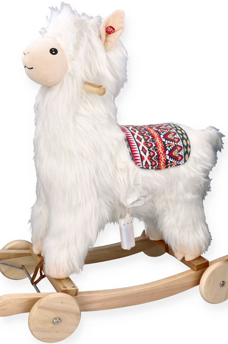 Banaby.de   »   Spielzeug   /   Schaukeln für Kinder   /   Alpaka auf Schaukelpferd mit Rädern