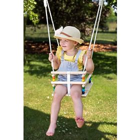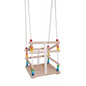 Eine Holzschaukel mit bunten Perlen sorgt für viel Spaß für das Kind zu Hause und im Garten. Die Schaukel regt das Kind auf spielerische Weise zu Bewegungen an .. mehr