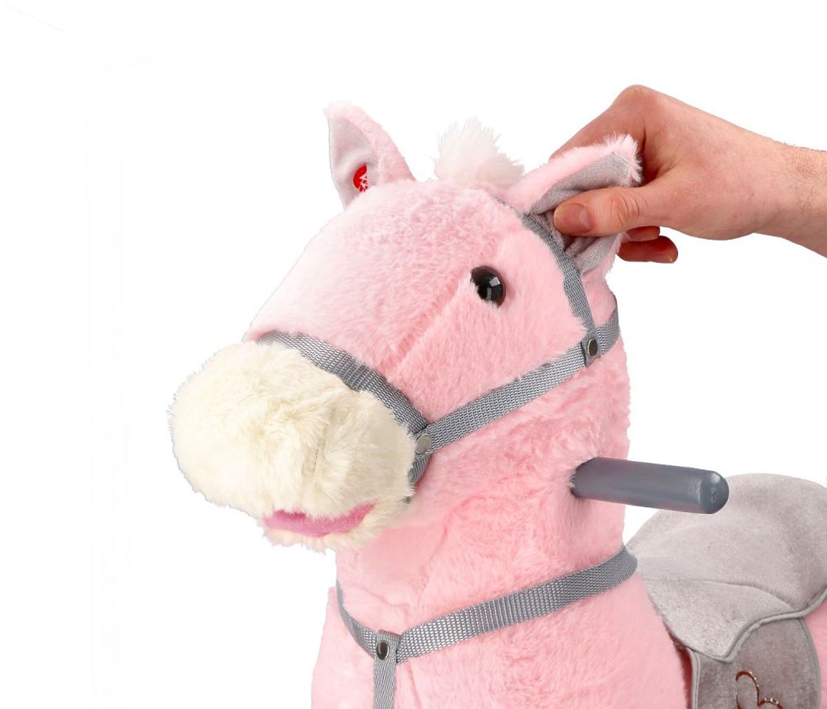 Ein weiteres Merkmal des Schaukelpferdes ist der Ton, den unser interaktives Pferd während der Fahrt erzeugt. Drücken Sie einfach ein Ohr, und Sie hören das Geräusch galoppierender Pferdehufe und das Wiehern eines zufriedenen Pferdes.