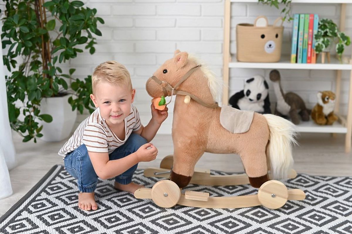 Schauen Sie sich dieses schöne Pferdchen an. Wohin läuft es so schnell? Es galoppiert fröhlich und lädt zum gemeinsamen Spiel ein. So ist unser neuestes Schaukelpferd – fröhlich, ungeduldig und voller Lust auf gemeinsamen Spaß. Und was hat es davon? Natürlich jede Menge Spaß und eine Karotte.