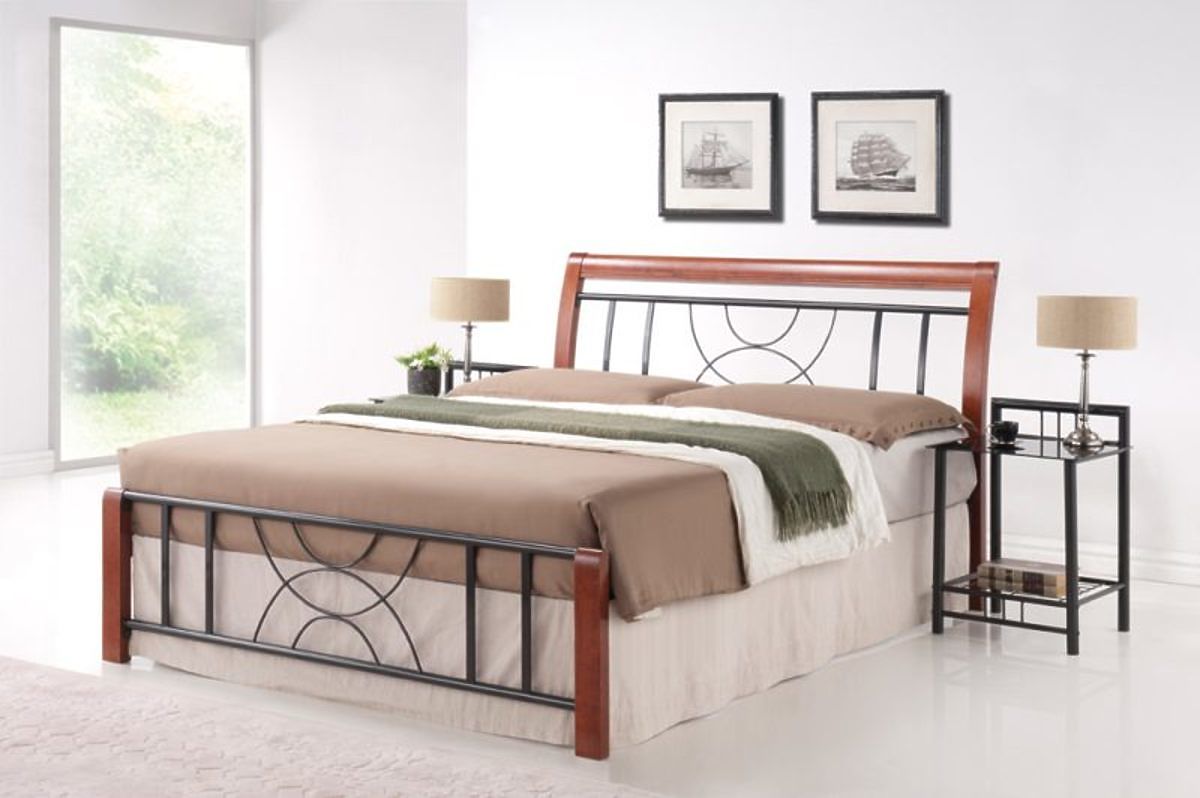 Design Bett in schwarzem Metall mit einer Kombination aus Massivholz antiken kirschroter Farbe. Der Preis des Bettes Gitter gezählt. Der Schlafbereich des Bettes ist 180x200 cm. Matratze ist nicht im Bett enthalten ist es notwendig, es zu bestellen, empfehlen wir Dimension 180x200 cm.