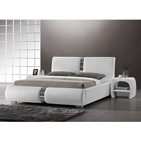Das Bett besteht aus Eco Lederqualität Holzkonstruktion mit Lattenrost, ergänzt durch Metall und Chrom-Accessoires.