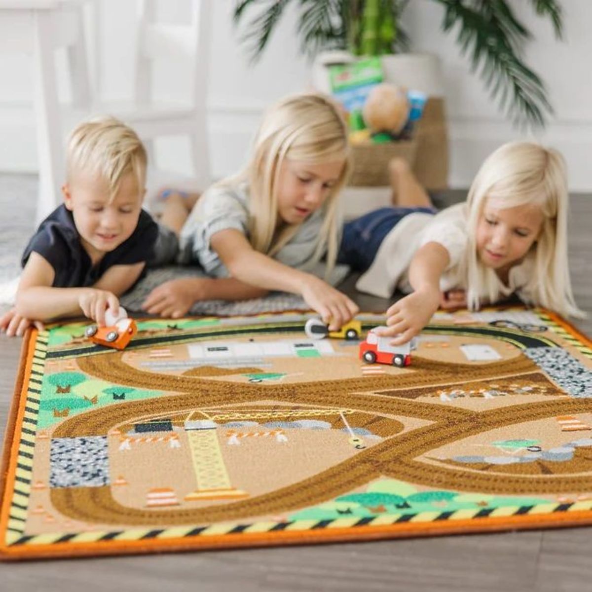 Das Spielfeld auf der Baustelle ist ein lustiger Spielbereich, der auch ein Kinderzimmer wunderschön beleben wird. Durch die Erfindung verschiedener Szenen und Geschichten entwickelt das Kind seine Fantasie und Kreativität. Das Spielen mit Spielzeugautos unterstützt auch die Entwicklung der Feinmotorik.