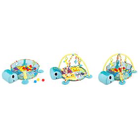 Eine fröhliche Spieldecke in Form einer Schildkröte schafft eine sichere Ecke für Kinder, um mit all ihren Lieblingsspielzeugen zu spielen. Hängende Spielzeuge .. mehr