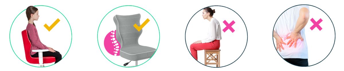 Das Modell des Drehstuhls mit Höhenverstellung ist geeignet für Schreibtische mit einer Höhe von 70-82 cm. Die Form der Rückenlehne sorgt für eine korrekte Positionierung der Wirbelsäule und bietet dem Benutzer maximale Entlastung der Wirbelsäule. Ein solch gestalteter Stuhl schafft zudem optimale Bedingungen für das Lernen junger Menschen, was ihn zu einer besonders interessanten und funktionalen Lösung macht.