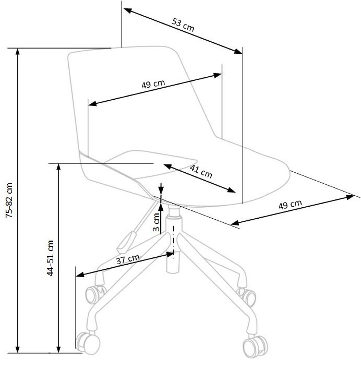 Der Stuhl ist mit einem Grundmechanismus ausgestattet, mit dem die Höhe des Sitzes an die Bedürfnisse des Benutzers angepasst werden kann, sodass er sowohl für Kinderzimmer als auch für Büros geeignet ist.