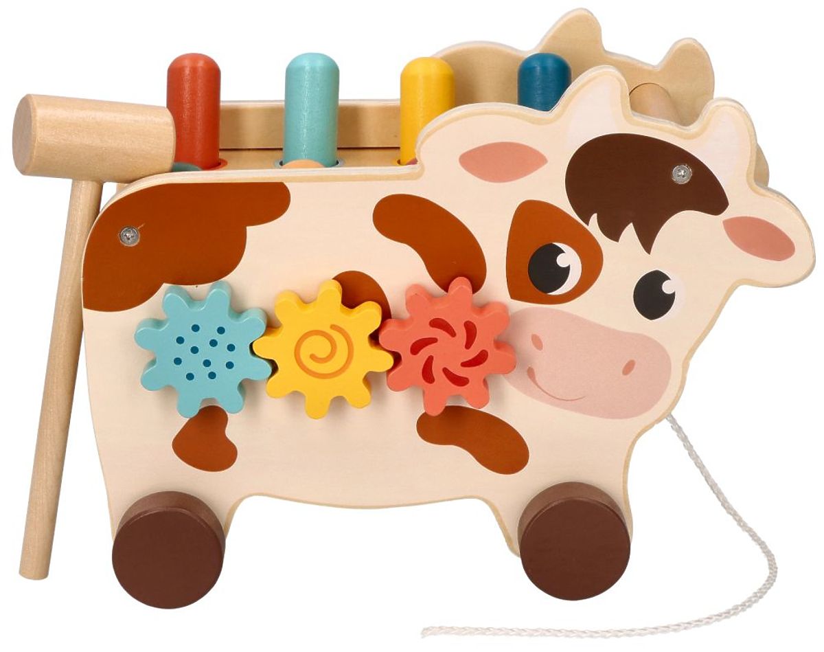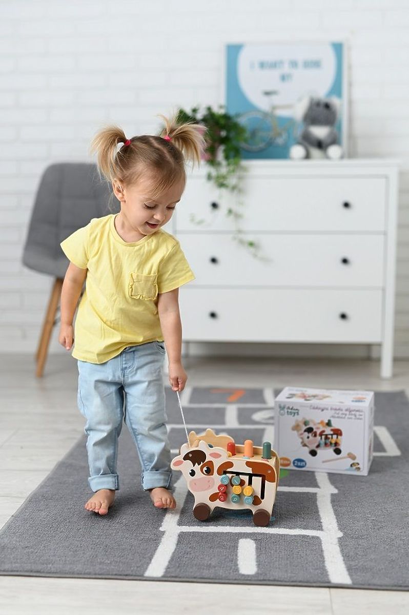 Durch das Spielen mit der Kuh entwickelt das Kind seine natürliche Neugier, lernt kreatives Denken und fördert die Vorstellungskraft. Die schönen Farben und die ästhetische Ausführung des Spielzeugs beeinflussen die Wahrnehmung des Kindes erheblich und gewöhnen es an neue Farbtöne. Die süße Kuh ist ein Holzspielzeug, das nicht nur unterhält und lehrt, sondern auch bei Kindern sehr beliebt ist.