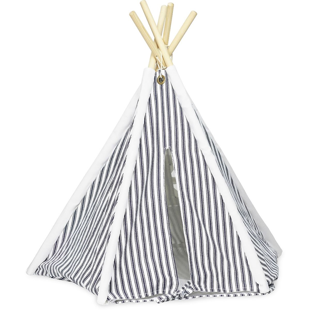 Schönes gestreiftes Mini-Tipi, ideal für Puppen. Der Holzrahmen mit textilem Überwurf ist einfach zu montieren. Der Stoff ist dunkelgrau und weiß. .. mehr