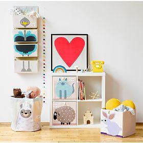 Eine Aufbewahrungsbox mit mit Pappe verstärkten Wänden kann allein in einem Raum stehen und erleichtert so den Zugriff und die Organisation der Dinge im Inneren. Die quadratische Form ermöglicht eine einfache Platzierung in verschiedenen Teilen des Kinderzimmers und auf handelsüblichen Regalen.