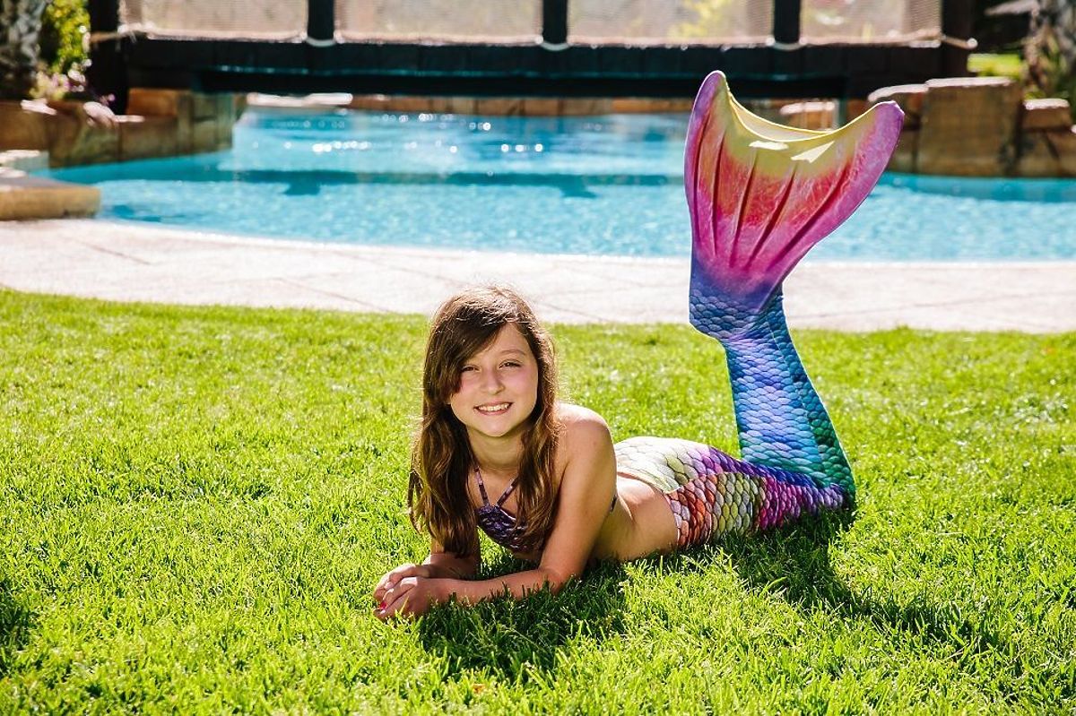 Meerjungfrauenschwänze sind in vielen Farben erhältlich (auch für Jungen) und in einer Version mit oder ohne Bikinioberteil. Das zweiteilige Set enthält:
