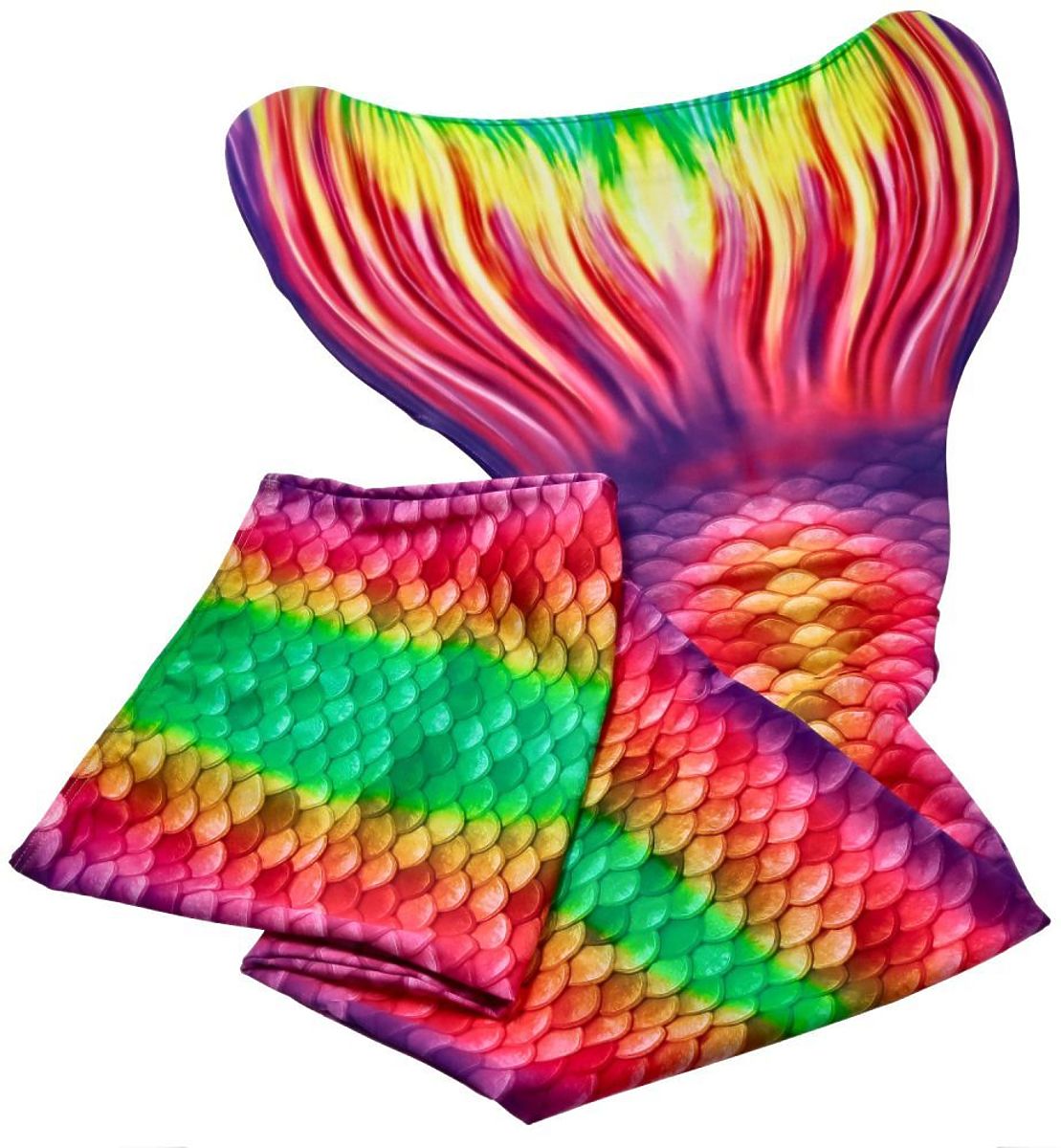 Der Meerjungfrauenschwanz wird in Spanien aus hochwertigem Lycra Xtra Life hergestellt, was optimale Haftung und Komfort bei der Nutzung garantiert. Das Design mit Fischschuppen, glänzenden Farben und 3D-Effekt verleiht dem Produkt ein realistisches Aussehen. Erhältlich in vielen Farben, Mustern und Größen für alle Altersgruppen.