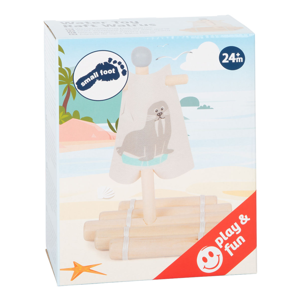 Wasserspielzeug - Floß Walross. Hallo, Kapitän! Dieses Holzfloß ist perfekt für kleine Seefahrer. Sie können es über das Wasser schieben und jedes Badeerlebnis genießen! Ob in der Badewanne, im Pool oder am Meer – wenn dieses Spielzeug ins Wasser gelangt, hält es nichts mehr auf. Wasserspielzeuge aus Holz sind eine umweltfreundlichere Alternative zu Plastik- und Gummispielzeugen. Für eine längere Lebensdauer des Spielzeugs trocknen Sie es nach dem Herausnehmen aus dem Wasser gründlich ab. Hauptmerkmale: Verwendung in der Badewanne, im Pool oder am Meer, das Spielzeug fördert die Fantasie, beim Segeln in der Natur wird es vom Wind angetrieben.