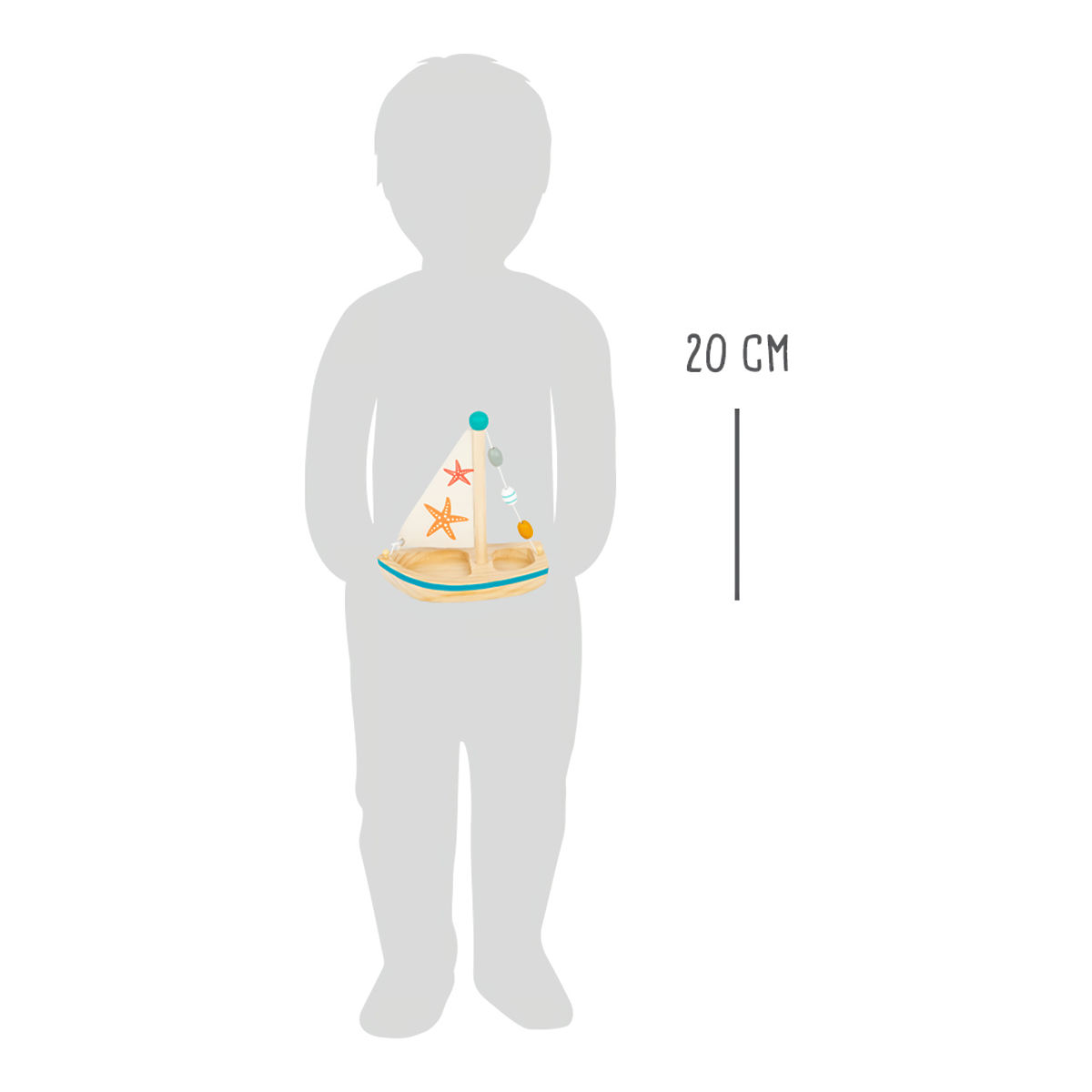 Alle Kapitäne bitte um Aufmerksamkeit! Mit diesem Holzsegelboot steuern Kinder in eine Welt voller Wasserspaß. Wenn die jungen Matrosen den Anker lichten, hält sie nichts mehr auf, sei es in der Badewanne, im Pool oder am Meer. Das Segelboot ist geräumig, sodass eigene Figuren hineingestellt werden können. Das Segelboot ist mit Holzperlen und einem Seestern-Druck dekoriert. Wasserspielzeuge aus Holz sind eine umweltfreundlichere Alternative zu Plastik- und Gummispielzeugen. Für eine längere Lebensdauer des Spielzeugs sollte es nach dem Herausnehmen aus dem Wasser gründlich getrocknet werden. Hauptmerkmale: Nutzung in der Badewanne, im Pool oder am Meer, das Spiel fördert die Fantasie, beim Segeln in der Natur wird es vom Wind angetrieben
