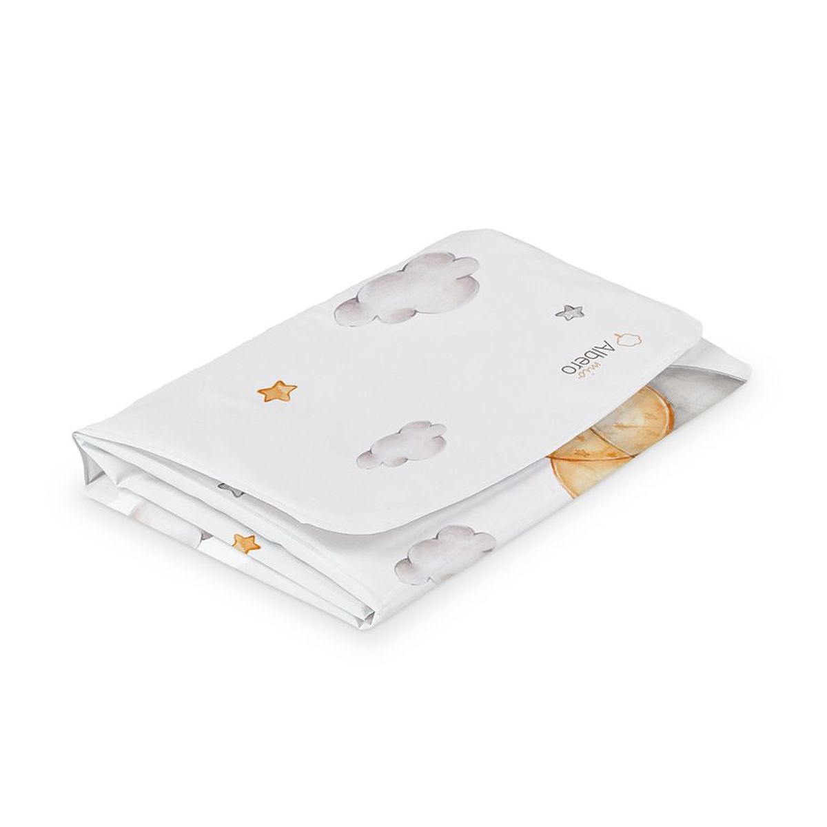 Reise-Wickelunterlage mit einem niedlichen Hasenmotiv mit Ballons ist ein praktischer Helfer für schnelles, bequemes und hygienisches Wickeln des Babys sowohl zu Hause als auch unterwegs. Dank des einfachen Zusammenfaltens der Unterlage auf eine kleine Größe nimmt sie wenig Platz in der Tasche ein und kann überallhin bequem mitgenommen werden.