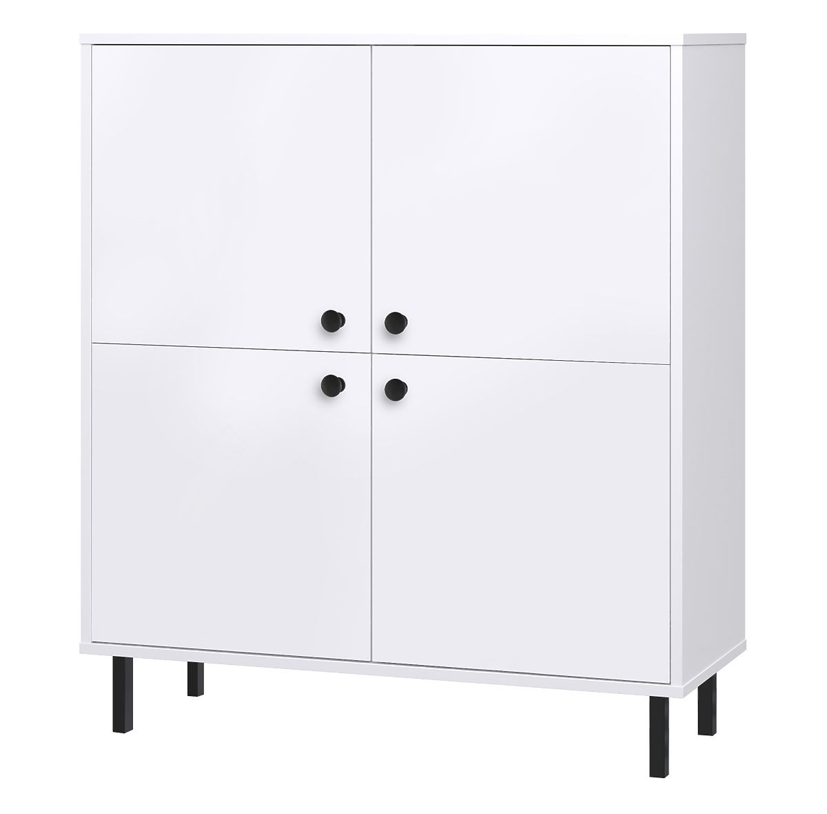 Elegante weie Kommode mit vier Tren und schwarzen Metallbeinen. .. mehr